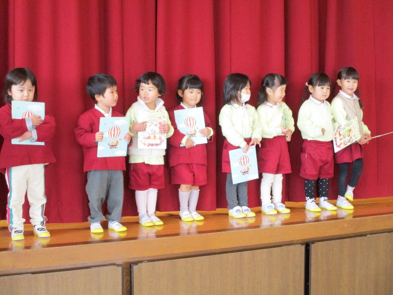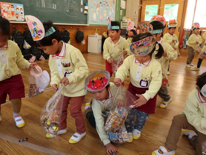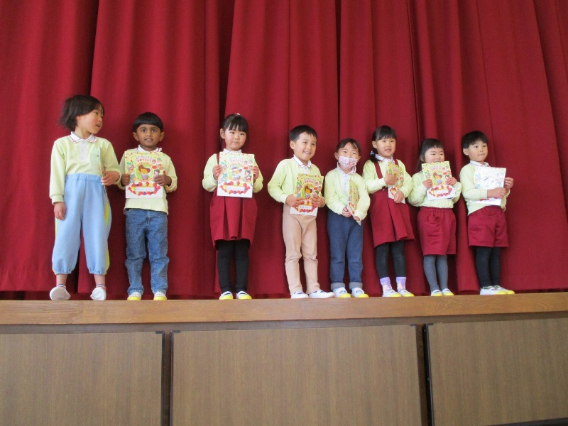 園の近況(2025年度)4月5月6月7月8月9月10月11月12月1月2月4月5月6月7月8月9月10月11月12月1月2月2024年度2023年度2022年度 2月の風景園での生活 花組さんの豆まきの様子です。袋いっぱいになりましたね。 星組さんの保育参観の様子です。元気いっぱい歌えました。 職員室前の廊下におひな様が飾られました。ご覧ください。 2月にお誕生日を迎えた花組さんのみなさんです。おめでとう。 2月にお誕生日を迎えた月組さんのみなさんです。おめでとう。 2月にお誕生日を迎えた雪組さんのみなさんです。おめでとう。 1月の風景園での生活 鉄棒の技を見せてくれる雪組さん。逆上がりもへっちゃらです。 なわとびに取り組む子が増えてきました。一回でも多くとべますように。 給食の準備をする花組さんの様子です。おいしく召し上がれ。 パンダ公園で元気に遊ぶ月組さん。雨の日でもだいじょうぶ。 冬休みの預かり保育の様子です。笑顔いっぱいです。 さわやかな「おはようございます」から一日が始まります。すてきです。 1月にお誕生日を迎えた花組さんのみなさんです。おめでとう。 1月にお誕生日を迎えた月組さんのみなさんです。おめでとう。 1月にお誕生日を迎えた雪組さんのみなさんです。おめでとう。 12月の風景園での生活 星組さんの保育参観の様子です。おうちの方と一緒につくりました。 クリスマス会午前の部です。演奏会もとてもすてきでした。 クリスマス会午後の部です。サンタさんからプレゼントをもらいました。 12月にお誕生日を迎えた花組さんのみなさんです。おめでとう。 12月にお誕生日を迎えた月組さんのみなさんです。おめでとう。 12月にお誕生日を迎えた雪組さんのみなさんです。おめでとう。 11月の風景園での生活 花組さん,リース作りです。両手に絵の具を塗ってもらい,ペタッ。 月組さん,音楽指導です。鍵盤ハーモニカで演奏します。 雪組さんの交通安全教室です。絶対,事故に遭わないようにね。 11月にお誕生日を迎えた花組さんのみなさんです。おめでとう。 11月にお誕生日を迎えた月組さんのみなさんです。おめでとう。 11月にお誕生日を迎えた雪組さんのみなさんです。おめでとう。 10月の風景園での生活 花組さん,お部屋でダンス指導です。楽しそうに踊っていました。 月組さん,健康指導です。跳び箱を跳び越えます。 雪組さんのリレーの応援をする星組さんです。いい光景です。 10月にお誕生日を迎えた花組さんのみなさんです。おめでとう。 10月にお誕生日を迎えた月組さんのみなさんです。おめでとう。 10月にお誕生日を迎えた雪組さんのみなさんです。おめでとう。 9月の風景園での生活 星組さん,初めての避難訓練でした。2階から整然と避難できました。 花組さん,後ろの運動場に避難し、再度,表の運動場へ向かいます。 星組さん,防災DVDを真剣に見ています。すごいです。 花組さん,中学生のお兄さん・お姉さんといっぱい遊びました。 月組さん,涼しいホールで,転がしドッジで大盛り上がりです。 雪組さん,敬老の日のはがきを出しにポストへ。想いよ,届け! 9月にお誕生日を迎えた花組さんのみなさんです。おめでとう。 9月にお誕生日を迎えた月組さんのみなさんです。おめでとう。 9月にお誕生日を迎えた雪組さんのみなさんです。おめでとう。 8月の風景園での生活 星組さん,雨の合間にシャボン玉をとばしました。にこにこでした。 雪組さん、人権について紙芝居で学びました。ありがとうございました。 夏休み中の預かり保育の様子です。にぎわっています。 7月にお誕生日を迎えた花組さんのみなさんです。おめでとう。 7月にお誕生日を迎えた月組さんのみなさんです。おめでとう。 7月にお誕生日を迎えた雪組さんのみなさんです。おめでとう。 8月にお誕生日を迎えた花組さんのみなさんです。おめでとう。 8月にお誕生日を迎えた月組さんのみなさんです。おめでとう。 8月にお誕生日を迎えた雪組さんのみなさんです。おめでとう。 7月の風景園での生活 月組さん、本物のパイナップルを見ながら描きました。 雪組さんが春から育てたひまわりが満開です。 雪組さんのお部屋で実習生による研究保育です。 雪組さんの打楽器グループの練習風景です。 花組さん、おいしそうにスイカを食べています。 花組さんのお昼寝風景です。すやすや気持ちよさそうです。 6月にお誕生日を迎えた花組さんのみなさんです。おめでとう。 6月にお誕生日を迎えた月組さんのみなさんです。おめでとう。 6月にお誕生日を迎えた雪組さんのみなさんです。おめでとう。 6月の風景園での生活 葵の会花班の方が植え替えをしてくださいました。ありがとうございます。 花組さんの健康指導の様子です。キリンさんになって歩きます。 月組さんの英語指導の様子です。しっかりと声を出していました。 雪組さんのダンス指導の様子です。体を思いっきり動かします。 花組さん、はじめての避難訓練です。驚くほど上手でした。 「とんぼをつかまえたよ」と園長室に来てくれ